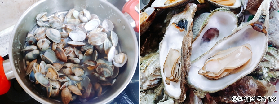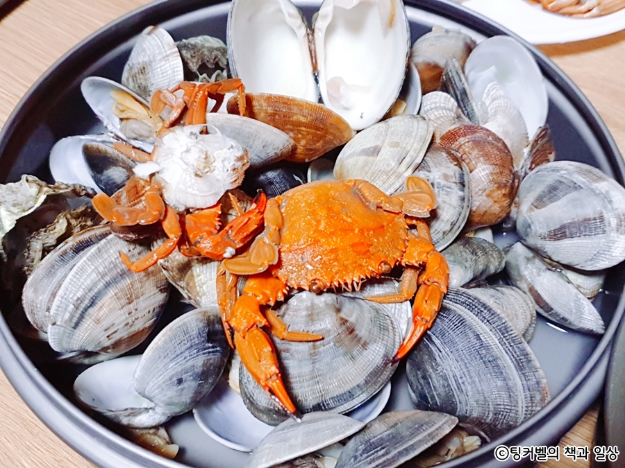그리고 저녁메뉴는 이날 캐온 조개를 해감해서 조탕과 조개찜으로 푸짐하게 먹었습니다~