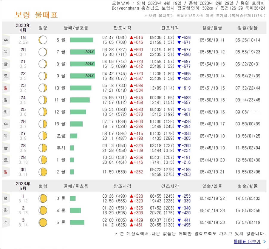 보령 물때표, 보령 바다날씨, 보령 바다정보 통합검색 - 바다타임