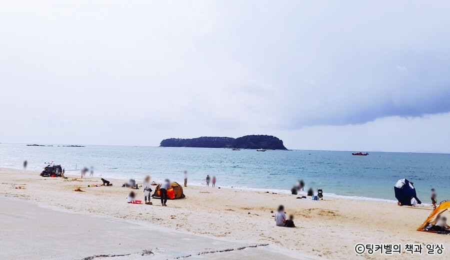 지금껏 간략하게 신비의 바닷길 다녀온 이야기 올려보았는데요. 빠져나갔던 물이 들어오면 바닷길은 온 데 간 데 없고 파란 바닷물이 넘실되는 해수욕장으로 변신한답니다.아이들은 모래놀이 하고 얕은곳에선 발 담그로 물놀이도 할 수 있어서 모래사장에 텐트 치시는 분들이 많더라구요.